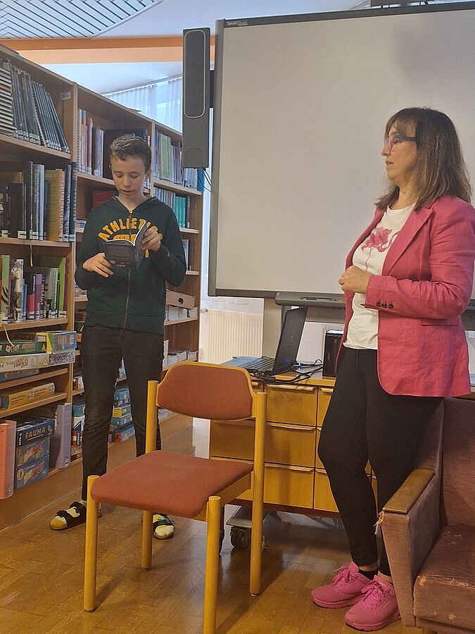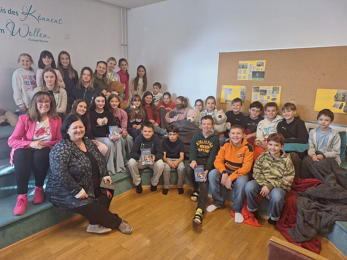 In einer besonderen Buchpräsentation stellten Joshua und Katja Massing am 7. November ihr Werk den Schülerinnen und Schülern der ersten und zweiten Klassen vor. Der junge Autor erzählte mit Begeisterung von der Entstehung des Buches, las spannende Textstellen vor und beantwortete die neugierigen Fragen des Publikums. Zum Abschluss sorgte noch ein Quiz für jede Menge Spaß. Die Schülerinnen und Schüler zeigten sich begeistert und spendeten Joshua viel Applaus.