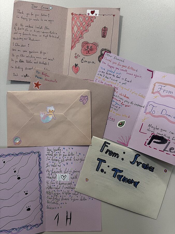 Pen pal Project der 1. Klassen: Um sich besser kennenzulernen, schrieben sich die Schüler:innen der Klassen 1H und 1M im Englischunterricht gegenseitig Briefe – jeder hatte einen Brieffreund in der Parallelklasse. Den Abschluss bildete eine gemeinsame Stunde, in der die letzten Briefe übergeben und zusammen gespielt wurde. Ein tolles Projekt voller Austausch, Spaß und neuer Kontakte. Die Schüler:innen waren mit großem Eifer dabei und freuten sich sichtbar über jede erhaltene Nachricht. Durch den persönlichen Austausch wurde nicht nur die Klassengemeinschaft gestärkt, sondern auch die Freude an der englischen Sprache weiter gefördert.