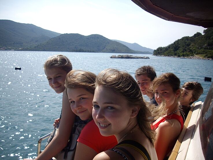 An diesem Tag machten wir eine Bootstour. Der Kapitän des Bootes war sehr groß und dick. Ein wahrer Seemann. Auf dem Schiff aßen wir auch zu Mittag. Wir bekamen Fisch und gebratenes Hühnchenfilet. Wir waren auf drei Inseln, den "Elaphitischen Inseln". Sie heißen „Šipan“, „Lopud“ und „Koločep“. Šipan ist mit 500 Einwohnern und 16,5 km² die größte Insel und 17 km von Dubrovnik entfernt. Lopud hat 350 Einwohner und ist 4,6 km² groß. Dies ist die einzige der drei Inseln, auf der es Süsswasser gibt. Koločep hat 150 Einwohner und ist mit 2,4 km² die kleinste der drei Inseln. Später hatten wir etwas Freizeit. Ich ging noch runter zum Pool und dort spielte ich Fußball.
