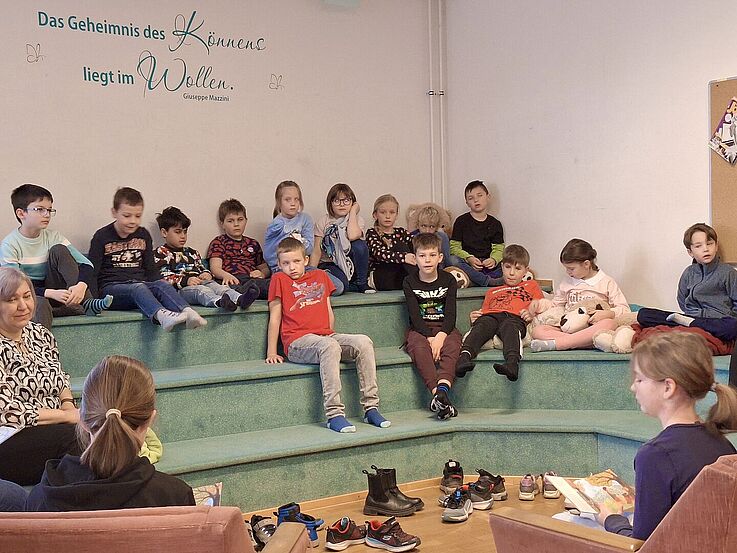 In the course of the Austrian Reading Day on March 21 various activities took place at our school. Pupils from the elementary school Oberwart were invited to our library where four pupils of the ZBG read out from the the book "Sterntaler" (written in 4 languages) in Hungarian and Croatian. After that everyone could create a bookmark and take it home. Our reading buddies of the 6H were also involved. The pupils enjoyed that very much and were listening attentively.